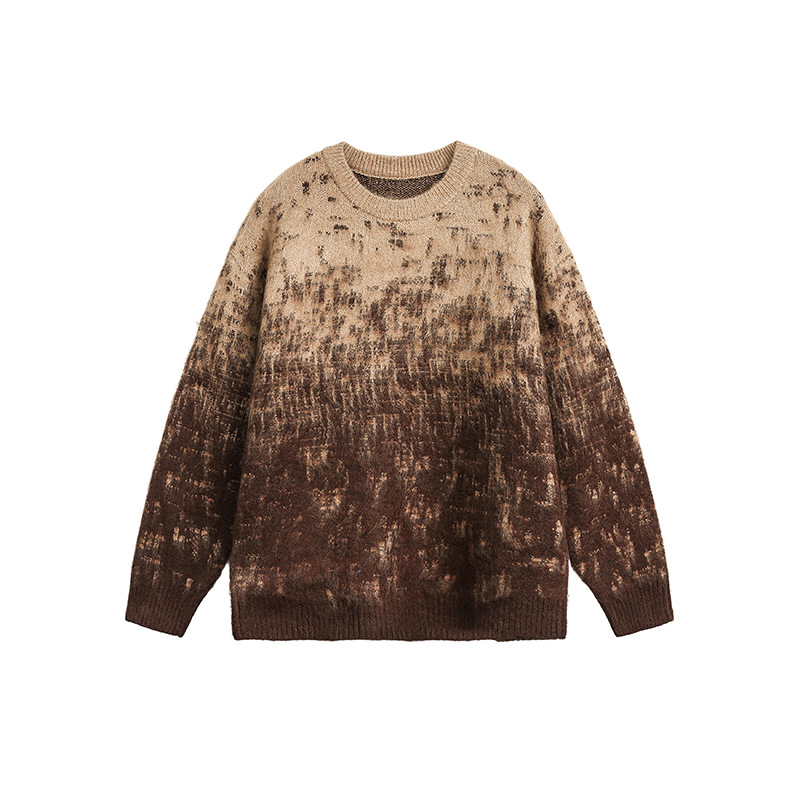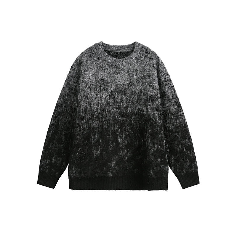 Small Quantity Apparel Factory Men's Gradient Warm Sweater Loose Long Sleeve Knitted Round Neck