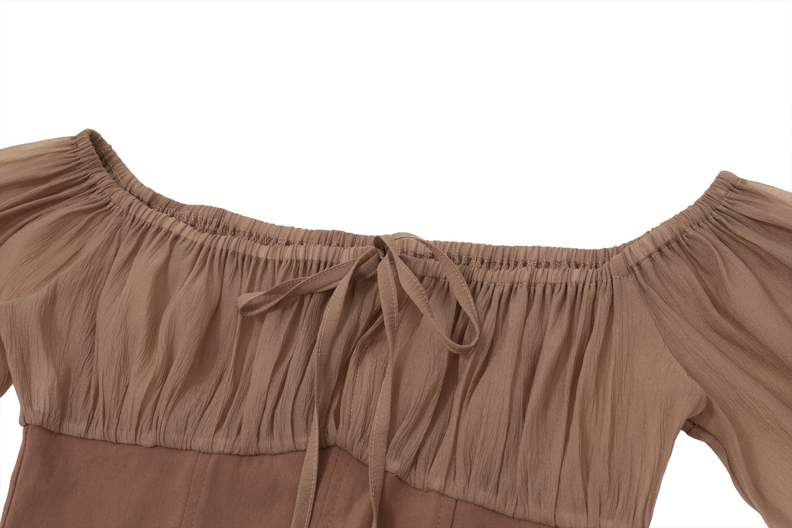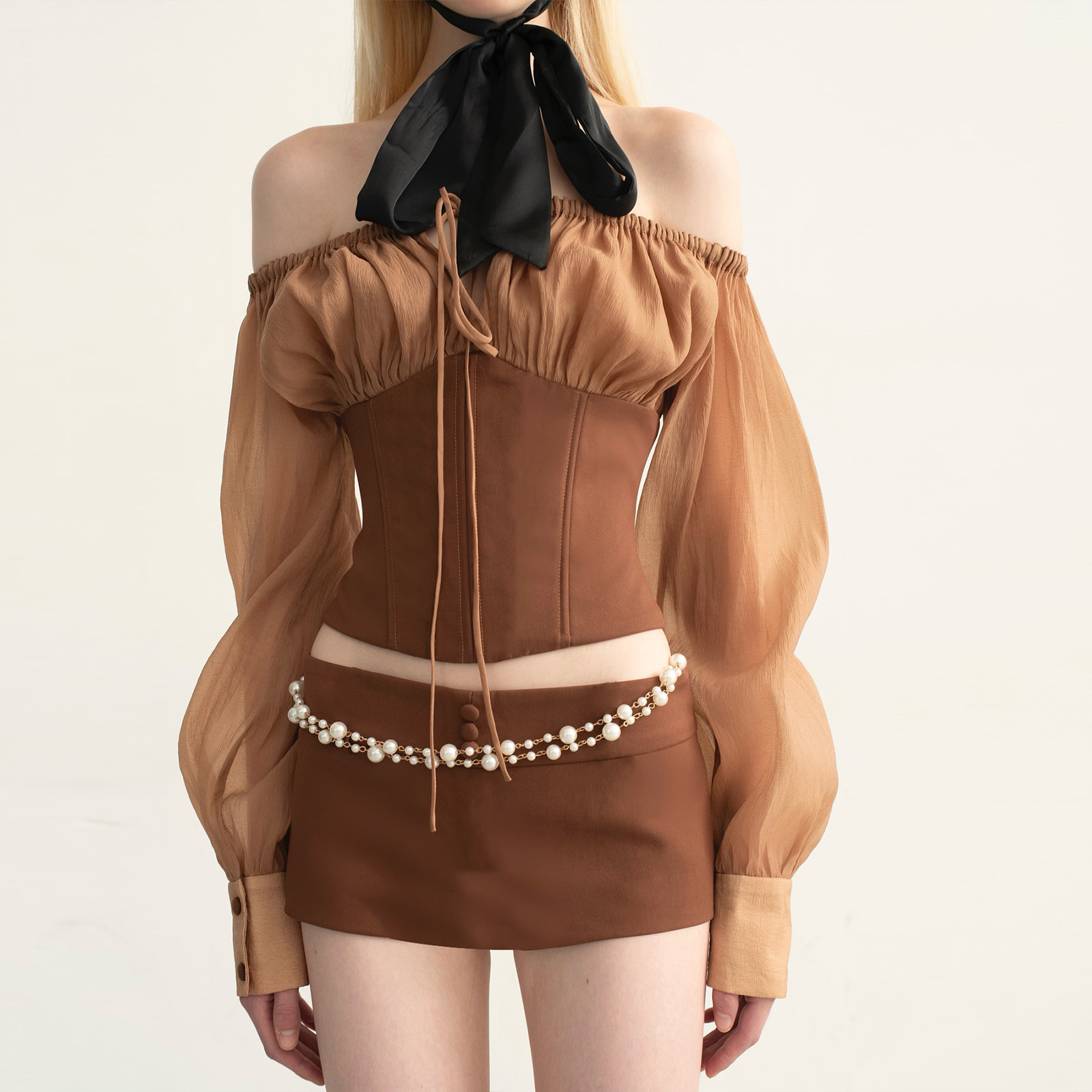| Feature | One-shoulder Mesh Tops +Hip-wrapped Short Skirt | ||||||